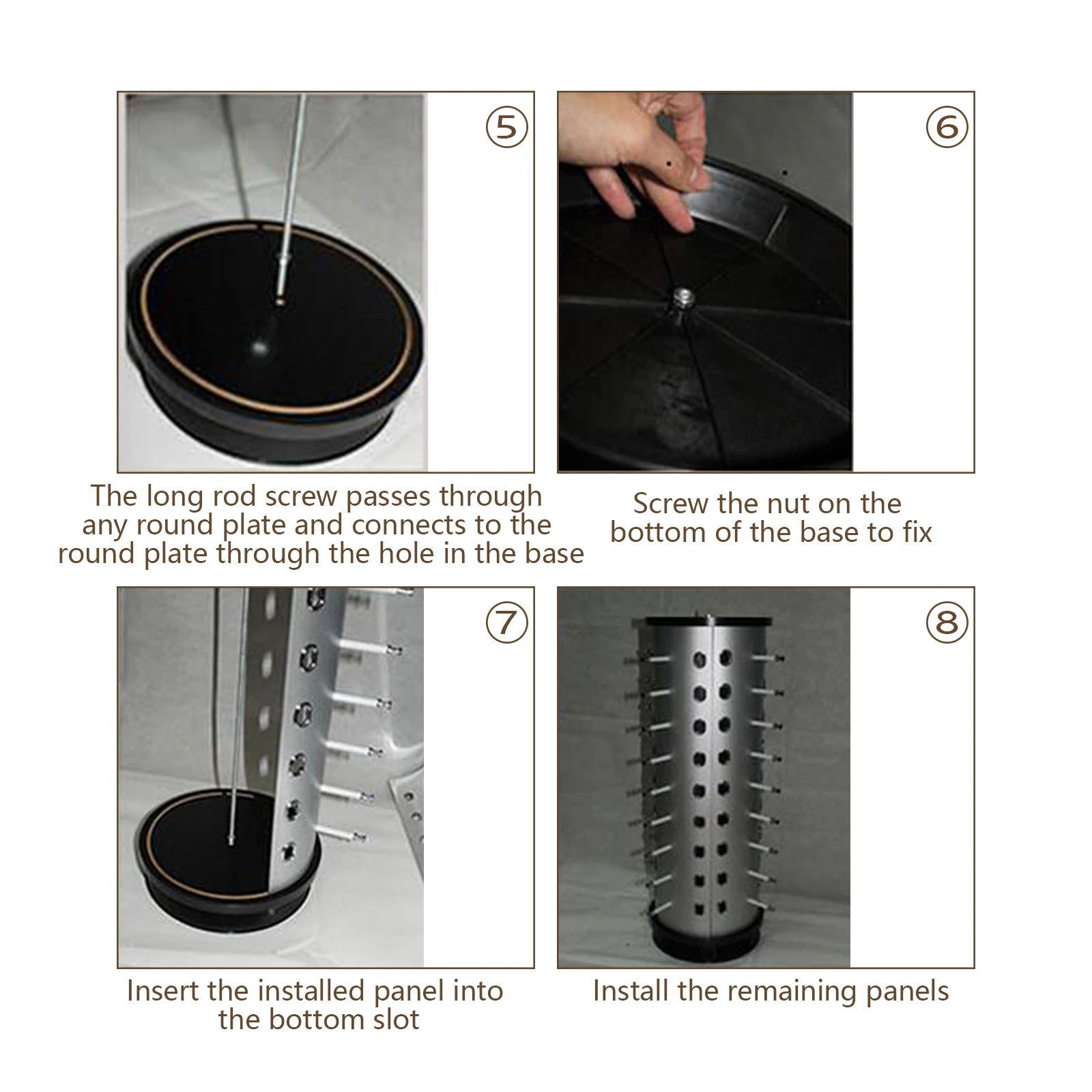 5. Pass the long rod screw through any round plate and connect it to the round plate through the hole in the base.