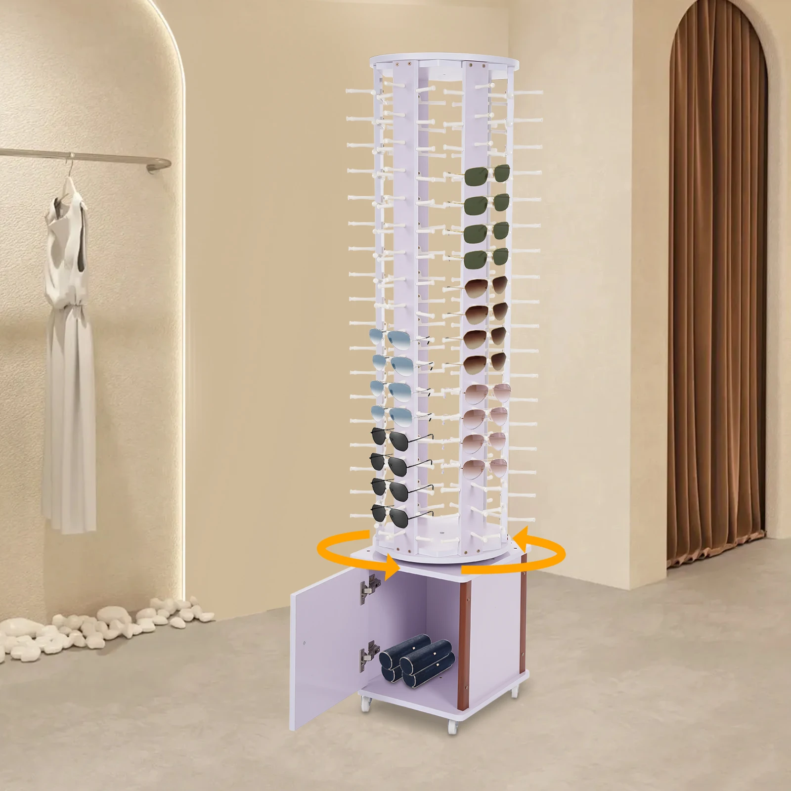 Display Assistant: The 360° rotation design makes this product display your glasses in all directions and allows you to reach without moving the stand.