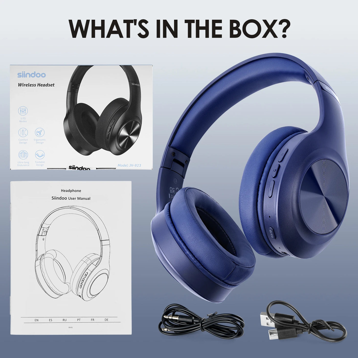 Siindoo JH-923 Wireless Headphones Over Ear,Foldable Bluetooth Headsets,3EQ Sound Modes, Hi-Res Audio with Mic Deep Bass Blue