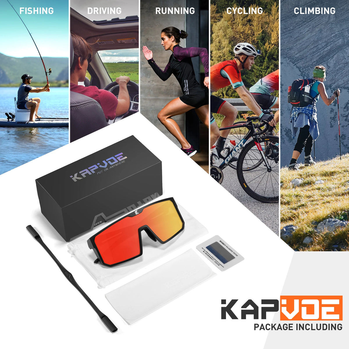 🚴【Multifunctional Use】These KAPVOE polarized sport glasses are perfect for outdoor activities such as cycling, biking, running, MTB, baseball, driving, triathlon, fishing, mountain tourism, softball, hiking, etc.