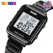 SKMEI Muslim Azan Digital Watches Men's Watch For Men Prayer With Qibla Compass Adhan Alarm Hijri Islamic Wristwatches Clock - Black / United States