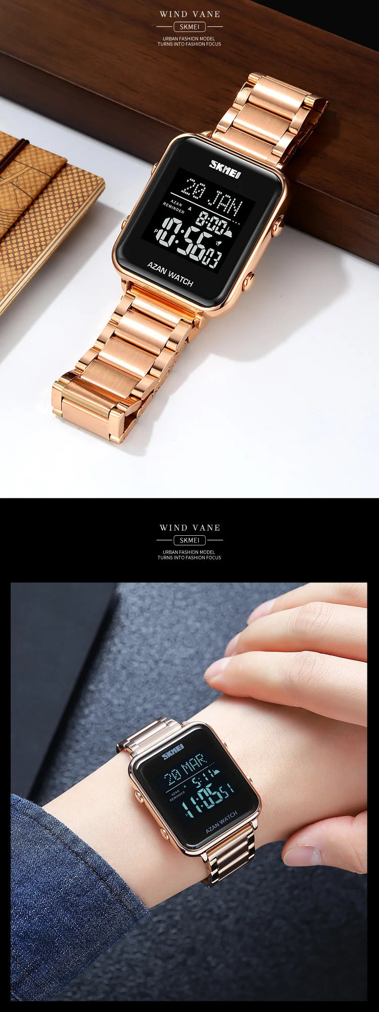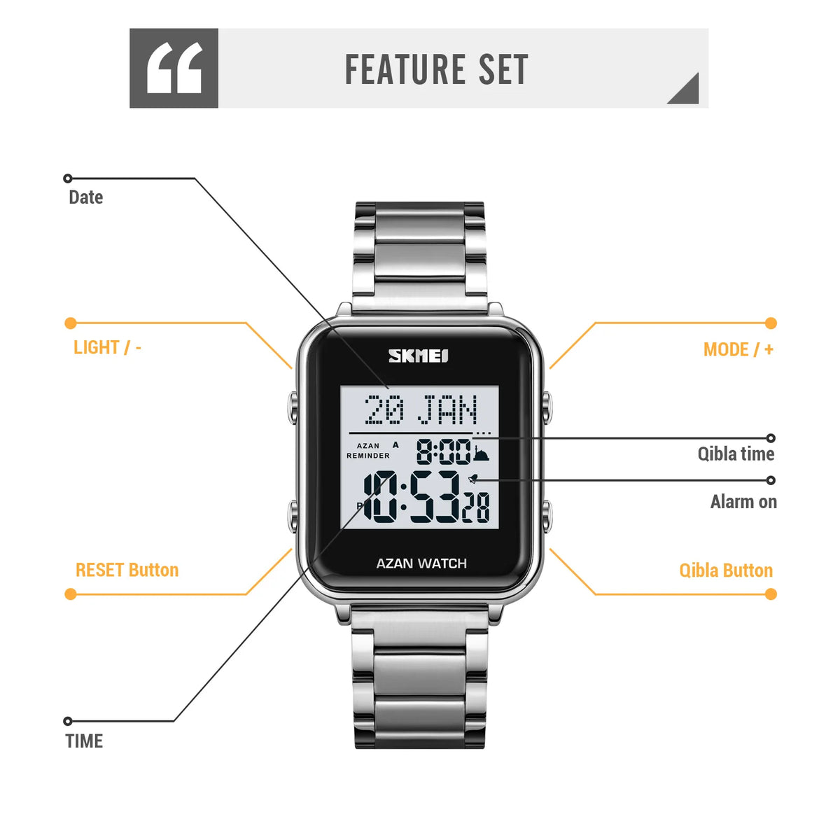 SKMEI Back Light Display Muslim Azan Digital Watches For Prayer with Qibla Compass Adhan Alarm Hijri Islamic Wristwatches Clock