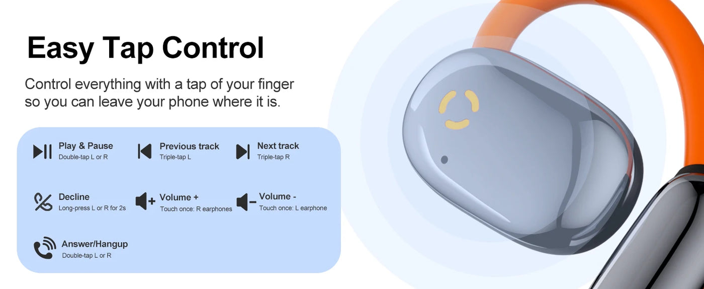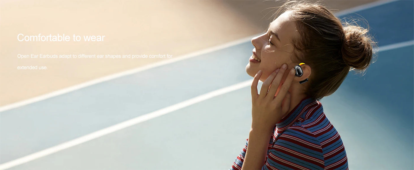 Open Ear Earbuds adapt to different ear shapes and provide comfort for extended use.